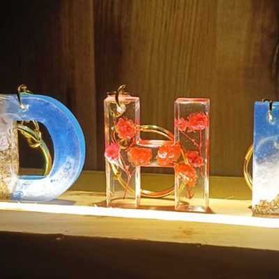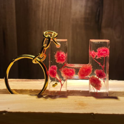 Make your keys, bags, or gifts extra special with our Custom Alphabet Keychains. Each keychain is handmade using high-quality resin and can be personalised with colors, glitter, flowers, or names.
